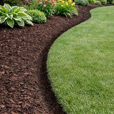 Hand-cut deep edge that defines your landscape — finished with premium mulch installation.